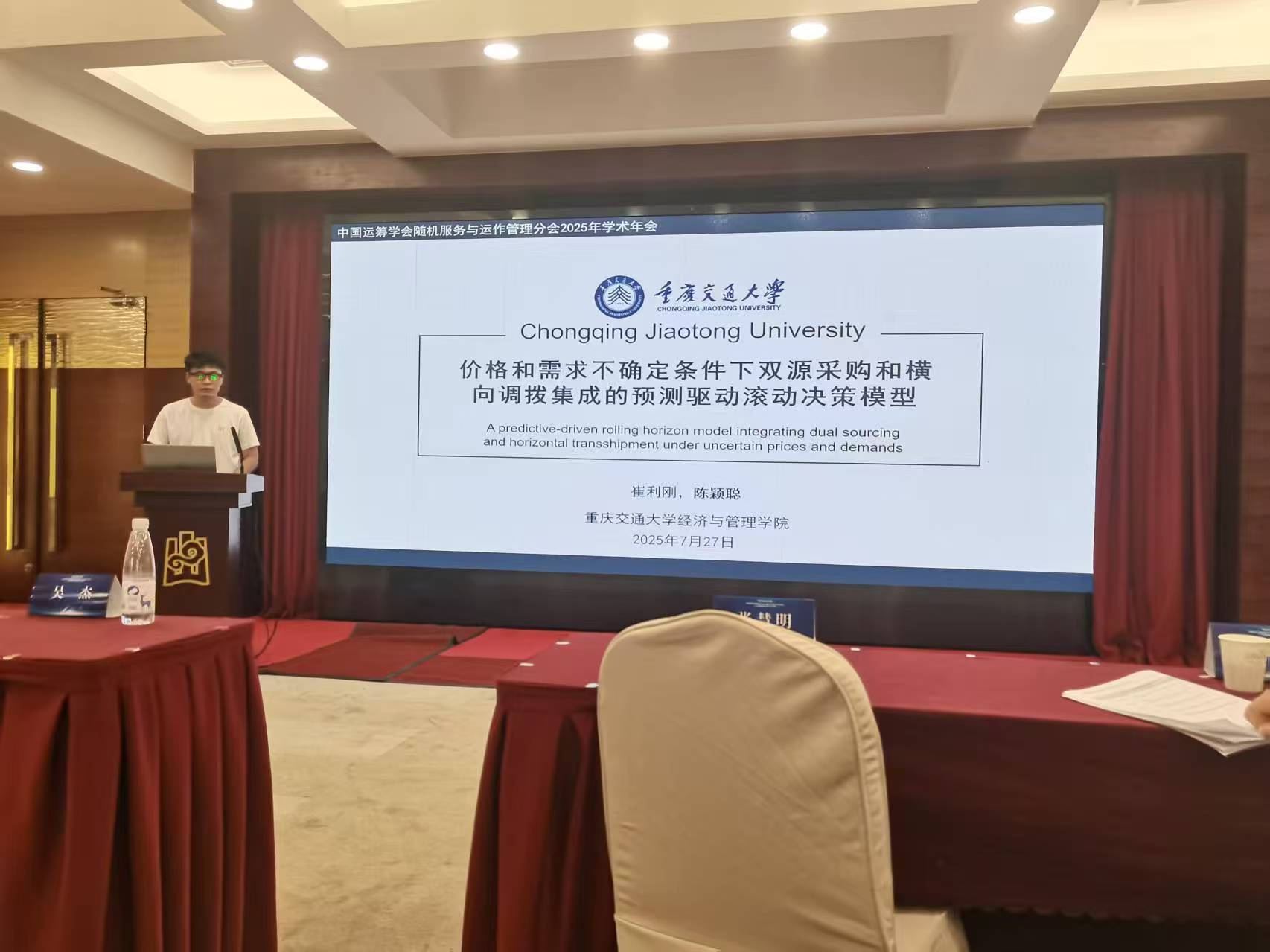 2025年7月26-27日,中心崔利刚教授团队博士生陈颖聪和硕士生李易隆两位同学在导师国家自科基金和重庆市科技局项目支持下参加中国运筹学会随机服务与运作管理分会2025年学术年会,并在会上交流最新成果。相关研究内容得到了多位与会专家的肯定和建议。